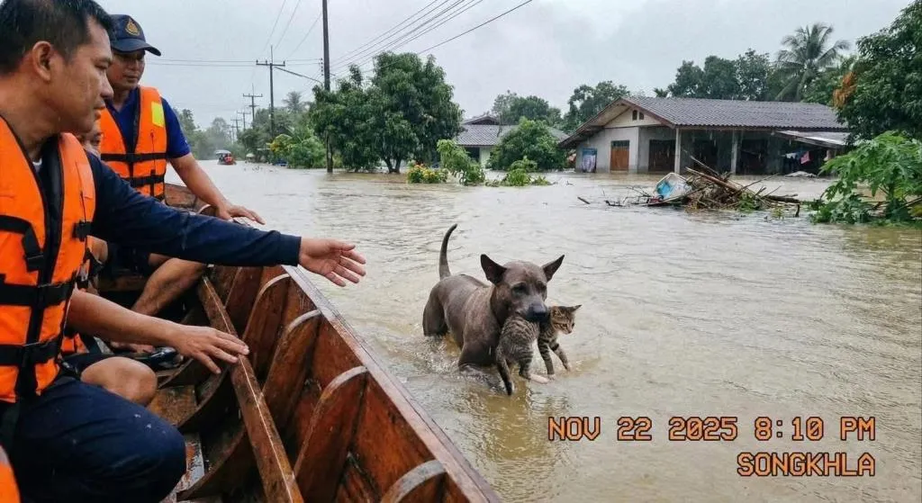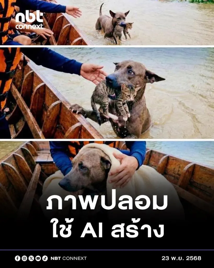 กรมประชาสัมพันธ์ตรวจสอบภาพสุนัขช่วยแมวในห้วงเวลาน้ำท่วมภาคใต้ พบทำขึ้นโดยโปรแกรม AI ไม่ใช่สถานการณ์จริง
