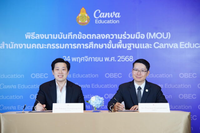 กรุงเทพฯ 24 พฤศจิกายน 2568 — Canva แพลตฟอร์มดีไซน์แบบครบวงจร ประกาศร่วมมือกับสำนักงานคณะกรรมการการศึกษาขั้นพื้นฐาน (สพฐ.) กระทรวงศึกษาธิการ มุ่งยกระดับห้องเรียนทั่วประเทศ โดยเปิดให้ครูและนักเรียนไทยกว่า 6 ล้านคน ใช้งาน Canva สำหรับครูและนักเรียนได้ฟรี พร้อมฟีเจอร์พรีเมียมทั้งหมด เพื่อสนับสนุนการเรียนรู้ผ่านเทคโนโลยีดิจิทัล เสริมสร้างความคิดสร้างสรรค์ และพัฒนาทักษะการทำงานเป็นทีมของนักเรียน