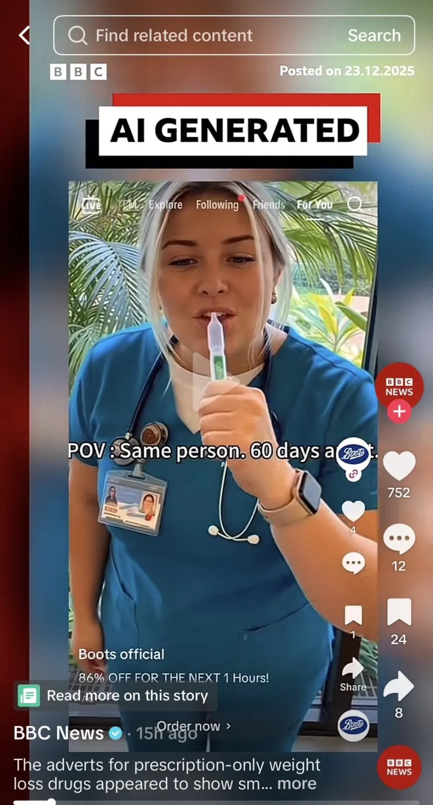 เหตุการณ์นี้เกิดขึ้นเมื่อมีบัญชี TikTok ปริศนา ใช้ชื่อว่า ‘@BootsOfficial’ (ของจริงคือ @BootsUK) และใช้โลโก้ของ Boots เพื่อสร้างความน่าเชื่อถือ โดยโพสต์วิดีโอที่มีเนื้อหาดังนี้ :