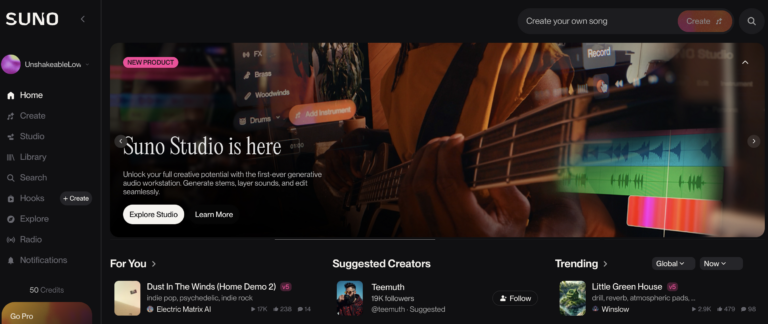 Suno สามารถสร้างเพลงพร้อมเสียงร้องจากคำอธิบายเพียงไม่กี่บรรทัด คุณภาพของผลงานอยู่ในระดับที่แยกแทบไม่ออกจากเพลงที่มนุษย์สร้าง
