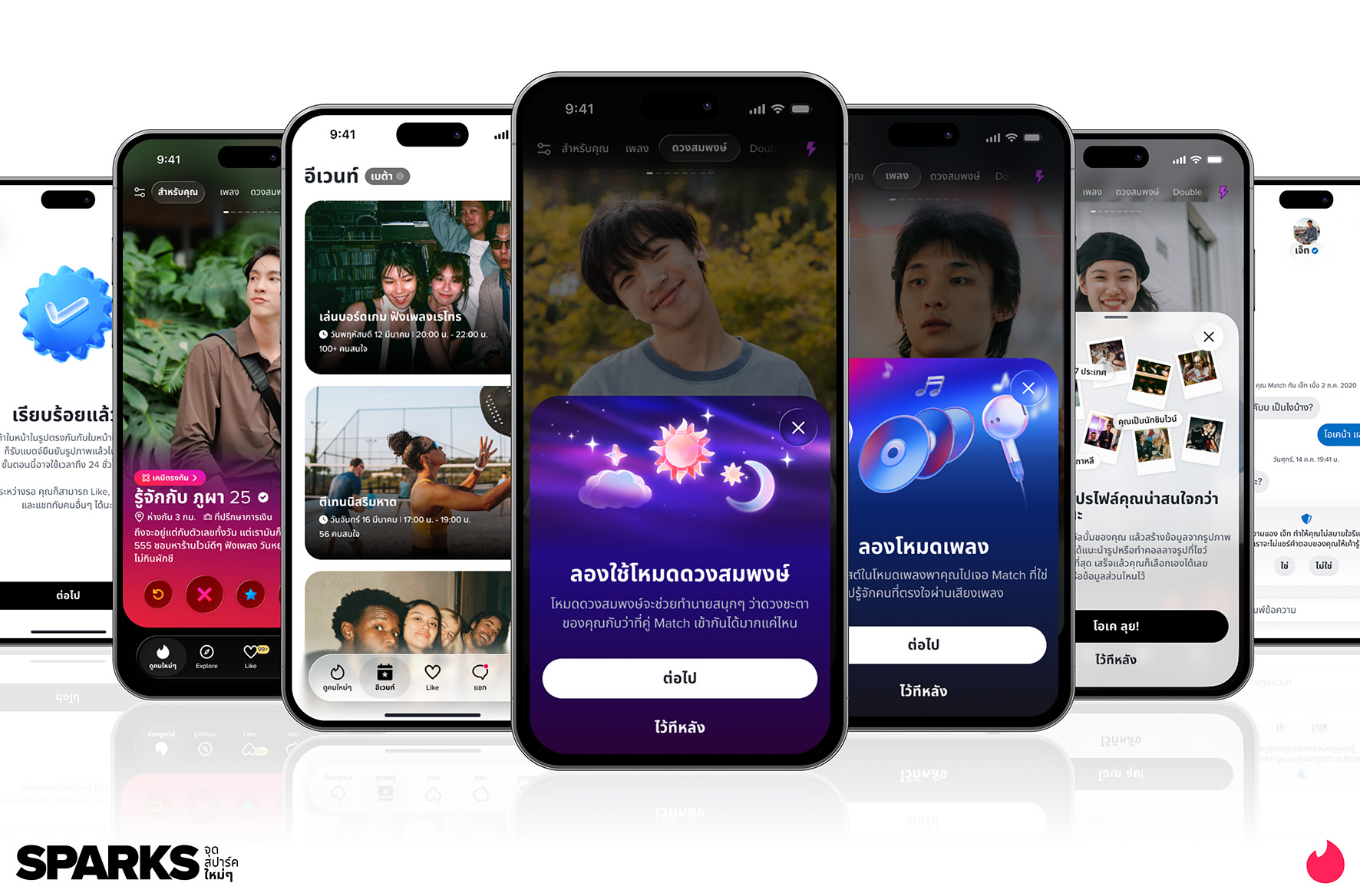 - Music Mode (เพลง) – ฟีเจอร์นี้เปิดตัวตั้งแต่ปี 2564 ช่วยให้ผู้คนแสดงตัวตนผ่านเพลงและ vibe ที่ชอบ ข้อมูลจากสหรัฐฯ ระบุว่ามากกว่าครึ่งของการ Match มีอย่างน้อยหนึ่งคนที่แชร์เพลงโปรดเพลงประจำตัวบน Spotify สะท้อนว่าเพลงช่วยเผยเคมีที่เข้ากันและการเริ่มต้นบทสนทนา และ 1 ใน 10 ของสมาชิกอายุต่ำกว่า 22 ปี เริ่มหันมาใช้ฟีเจอร์นี้